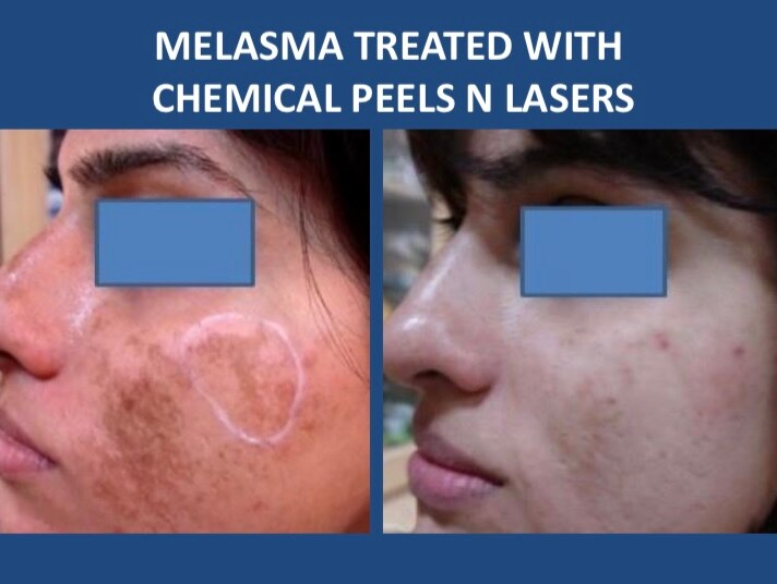 MELASMA THERAPY INCLUDES 3 . Procedures Chemical peels to exfoliate pigmented skin. Laser or light therapy (e.g. Q-switch laser) for deeper pigmentation (done cautiously). 🔹 4. Sun Protection Broad-spectrum sunscreen (SPF 50+) is a must, even indoors, to prevent worsening. 🔹 5. Maintenance Long-term care with gentle skincare and pigment control to avoid recurrence. ✅ Early treatment + sun protection = Best results. Would you like a poster or Instagram version of this?